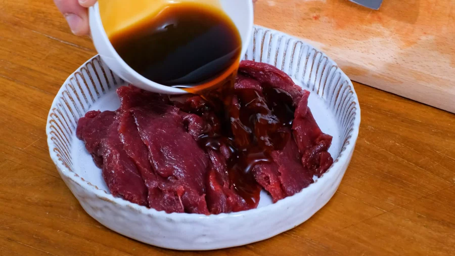 Les mettre à mariner 10 minutes dans la sauce soja avec le gingembre râpé.