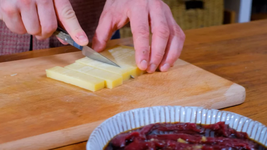 Découper le comté en 8 bâtonnets.