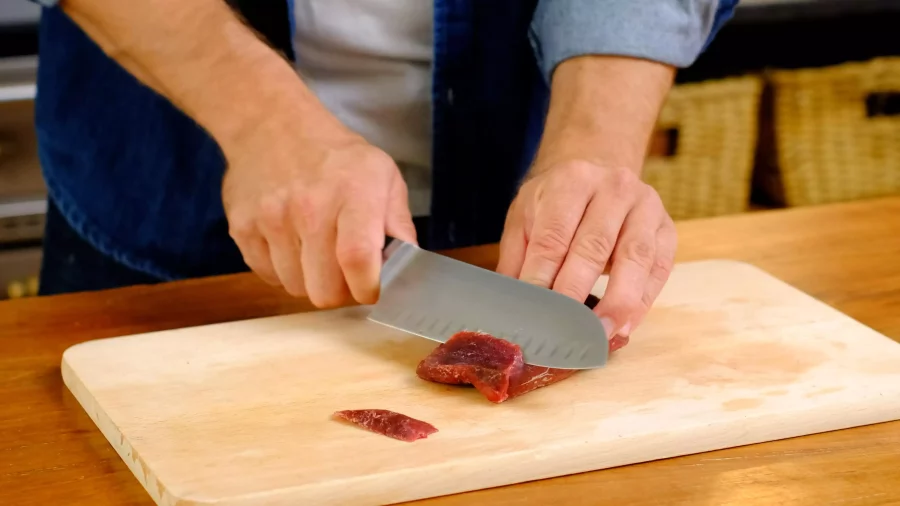 Mettez votre viande au congélateur 10 minutes avant de la couper pour tailler les tranches plus facilement, avec un couteau très aiguisé.
