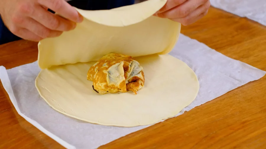 Ajouter une pâte feuilletée par dessus et détourer.