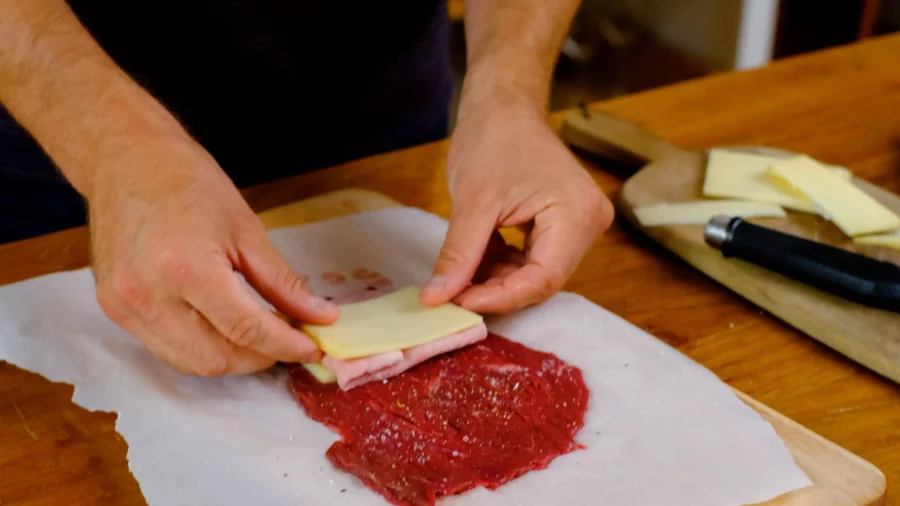 Mettre une première tranche de comté, puis une tranche de jambon puis une autre tranche de comté.