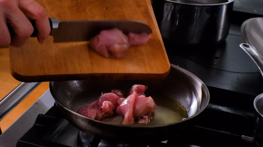 Saisir les morceaux de faisan dans l’huile puis réserver de côté.
