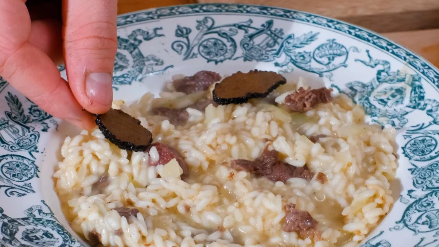 Râper la moitié d’une truffe, saler, poivrer