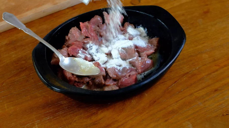 Mélanger le cerf avec l'œuf battu et la maïzena.